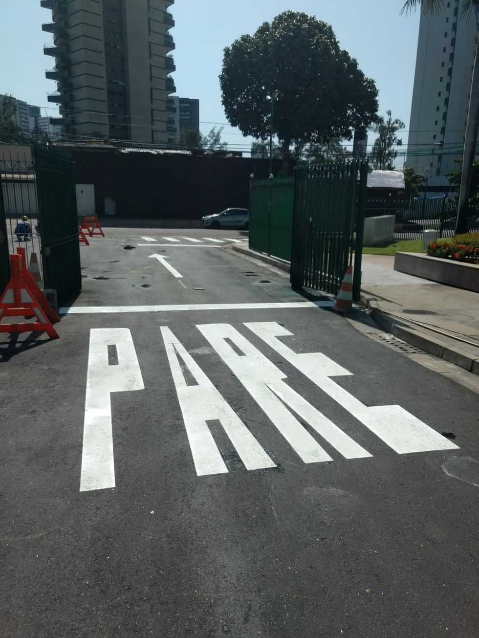 Sinalização gráfica horizontal executada sobre estacionamento e acessos para o controle, advertência e orientação de usuário do Templo do Recife em Parnamirim - Recife/PE